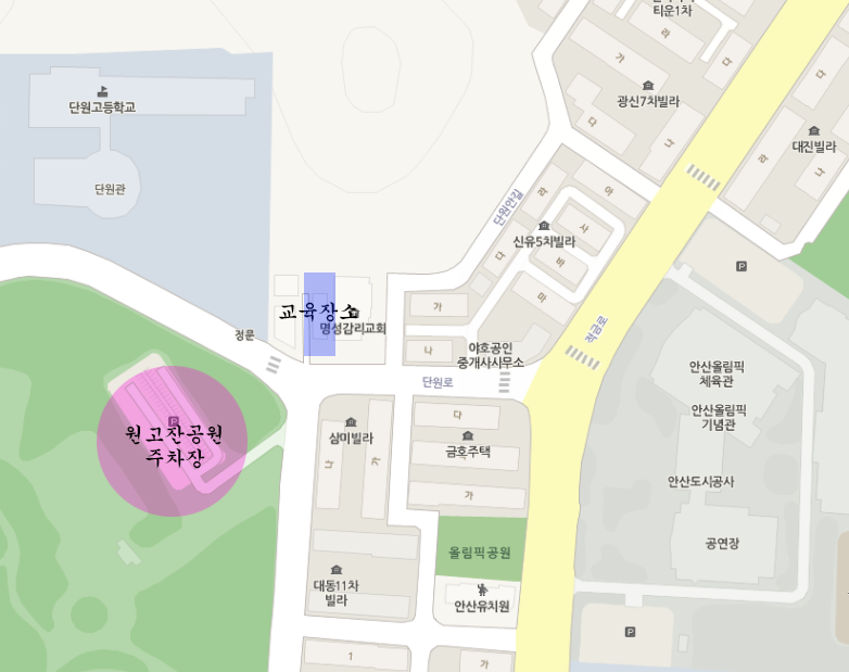 주차는 인근 원고잔공원 주차장에서 하시면 됩니다.
