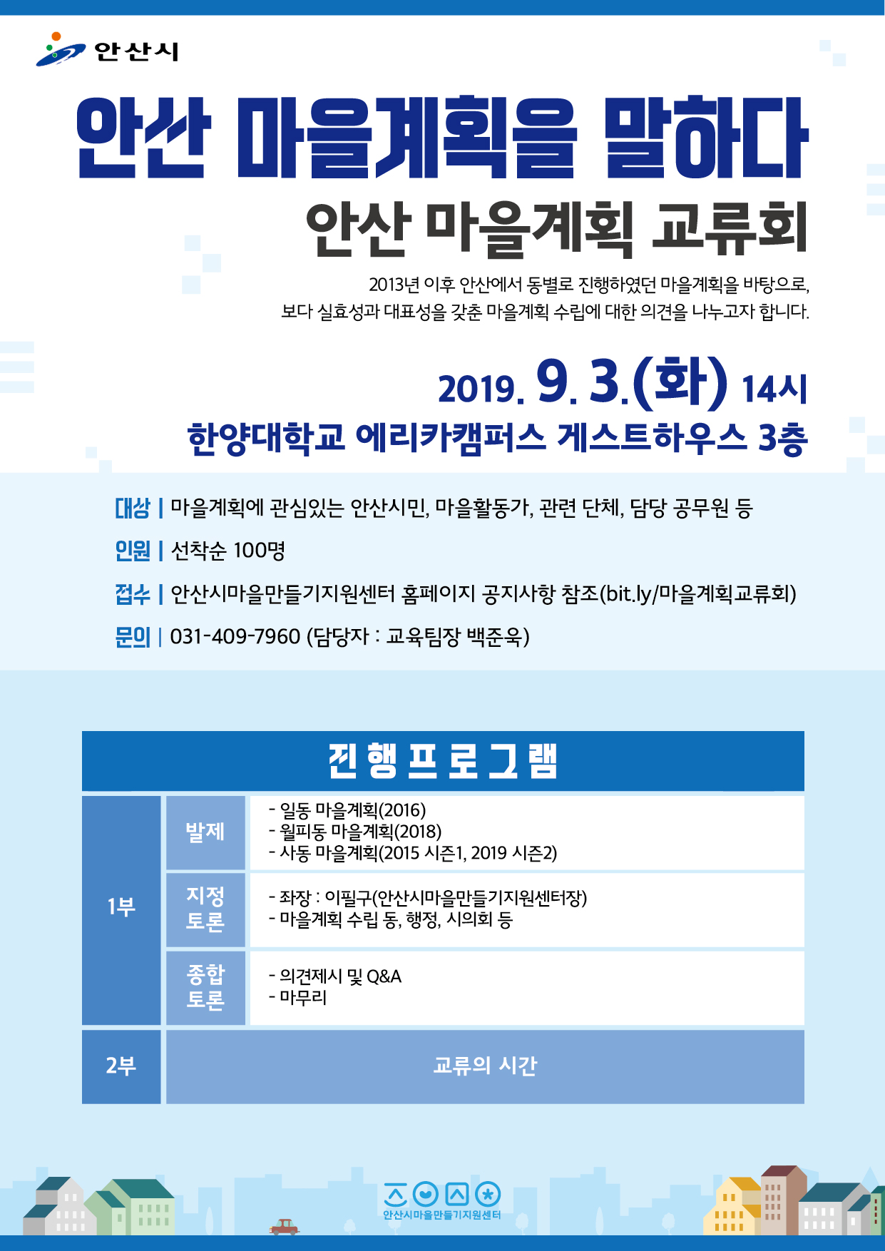 2013년부터 안산에서 진행되었던 마을계획. 올해는 어느 때 보다도 더욱 뜨겁게 동별로 진행되고 있습니다.