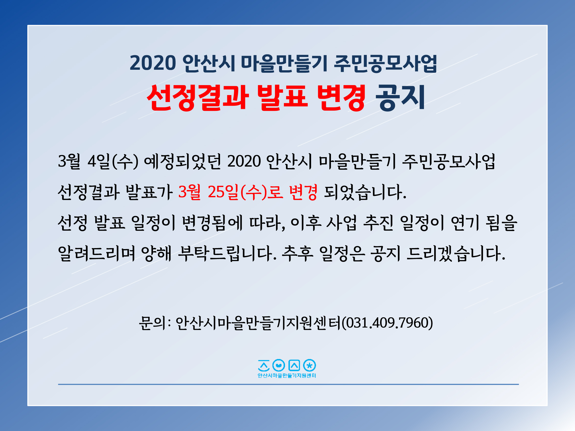 3월 4일(수) 예정되었던 2020 안산시 마을만들기 주민공모사업