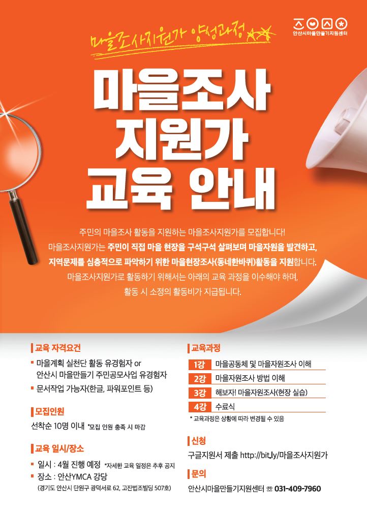 마을조사 활동에 앞서 "마을조사 지원가"를 양성하기 위한 교육이 진행됩니다!