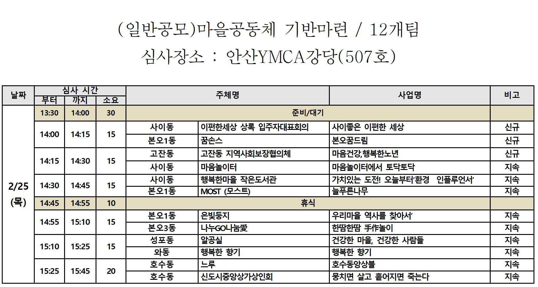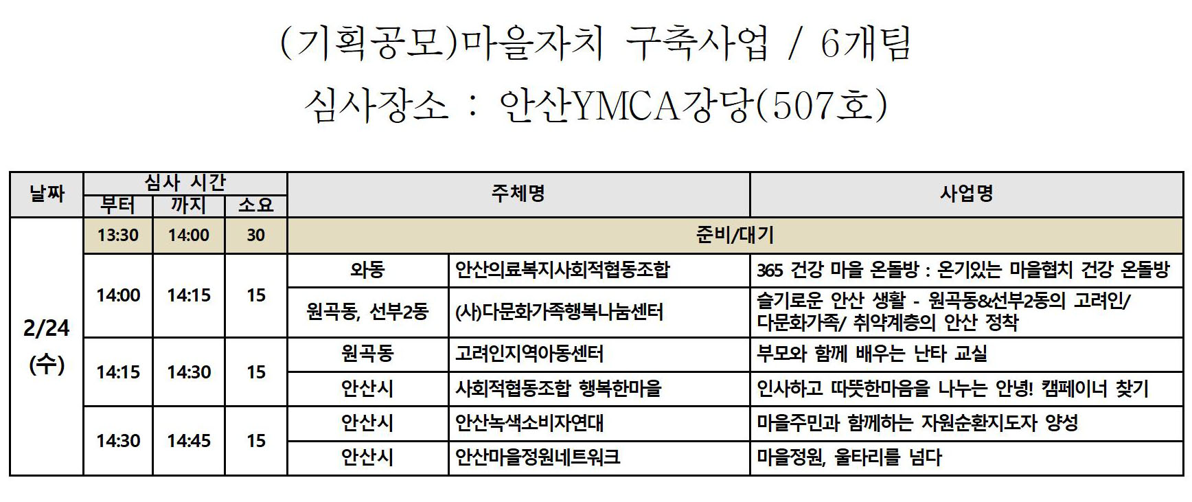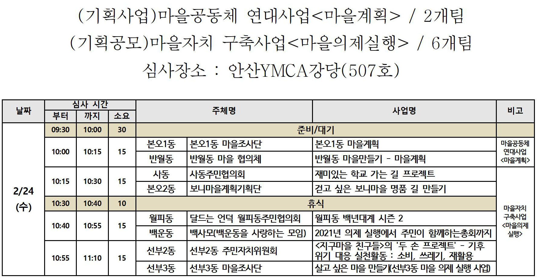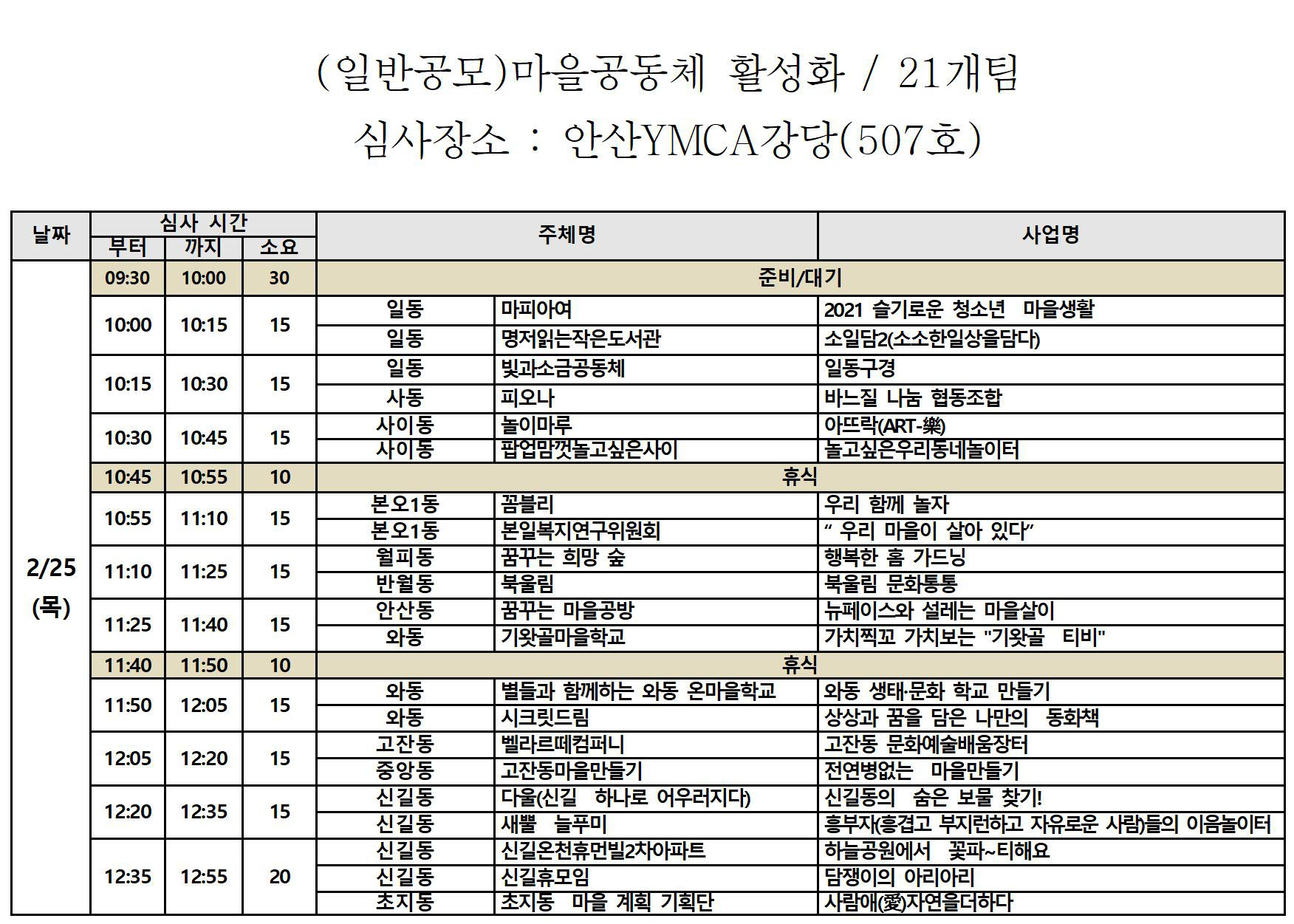 [2021년 안산시 마을만들기 주민공모사업 인터뷰 심사 안내]