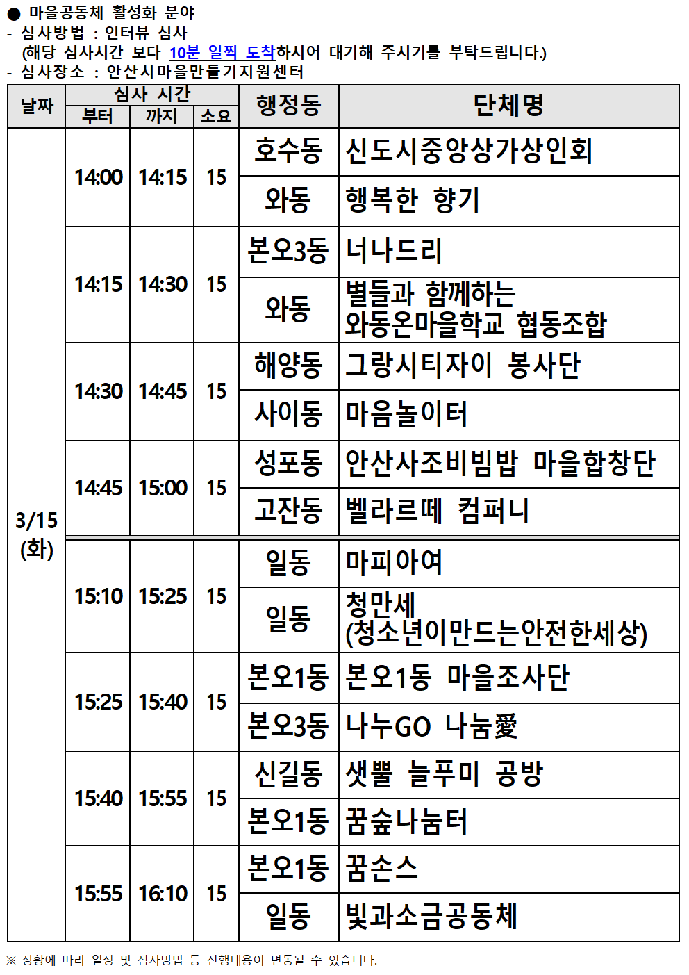 2022 안산시 마을만들기 주민공모사업 인터뷰 심사 안내 [마을공동체 활성화 분야]