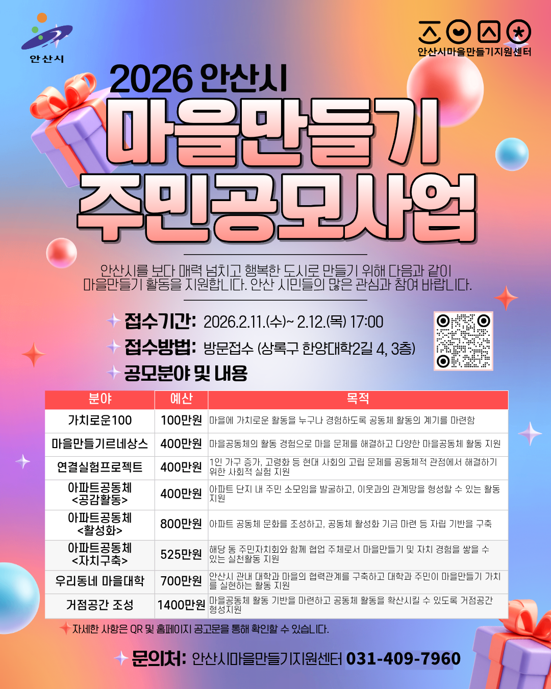 -접수방법 : 안산시마을만들기지원센터(안산시 상록구 한양대학2길 4, 3층)