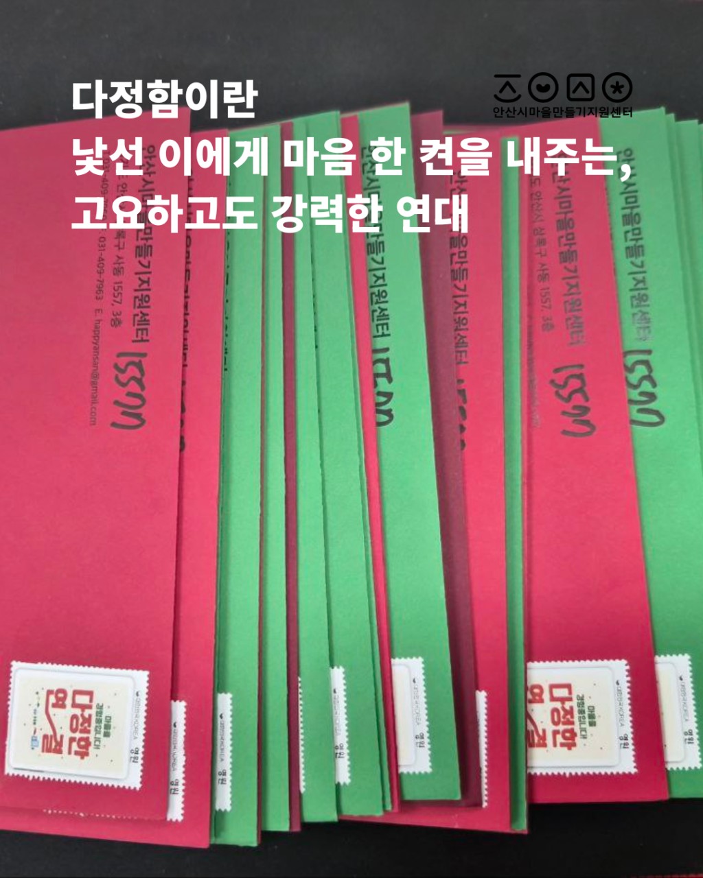 모든 편지는 받는 분이게 잘 전달될 수 있도록 배정되었으며, 안산자치한마당의 현장 사진과 센터의 감사글을 함께 담았습니다.