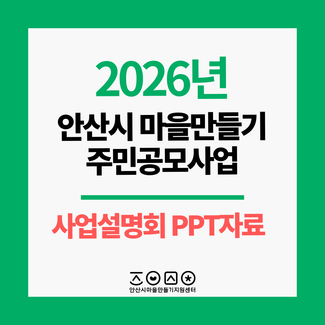 2026 안산시 마을만들기 주민공모 사업설명회 PPT자료입니다. 아래 내용자료 다운받아서 볼…