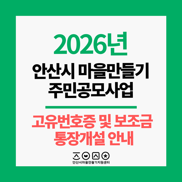 [고유번호증 및 보조금 통장 개설안내] 2026년 안산시 마을만들기 주민공모 안내