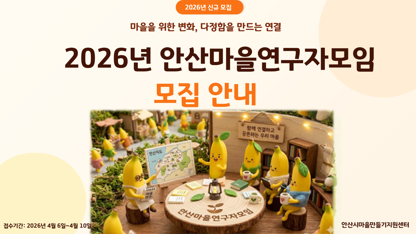 2026년 안산마을연구자모임으로 함께할 안산시민을 찾습니다!