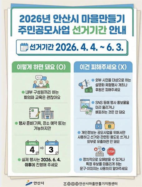 2026년 안산시 마을만들기 주민공모사업 운영 관련 공직선거법 및 개인정보 관리 준수 안내