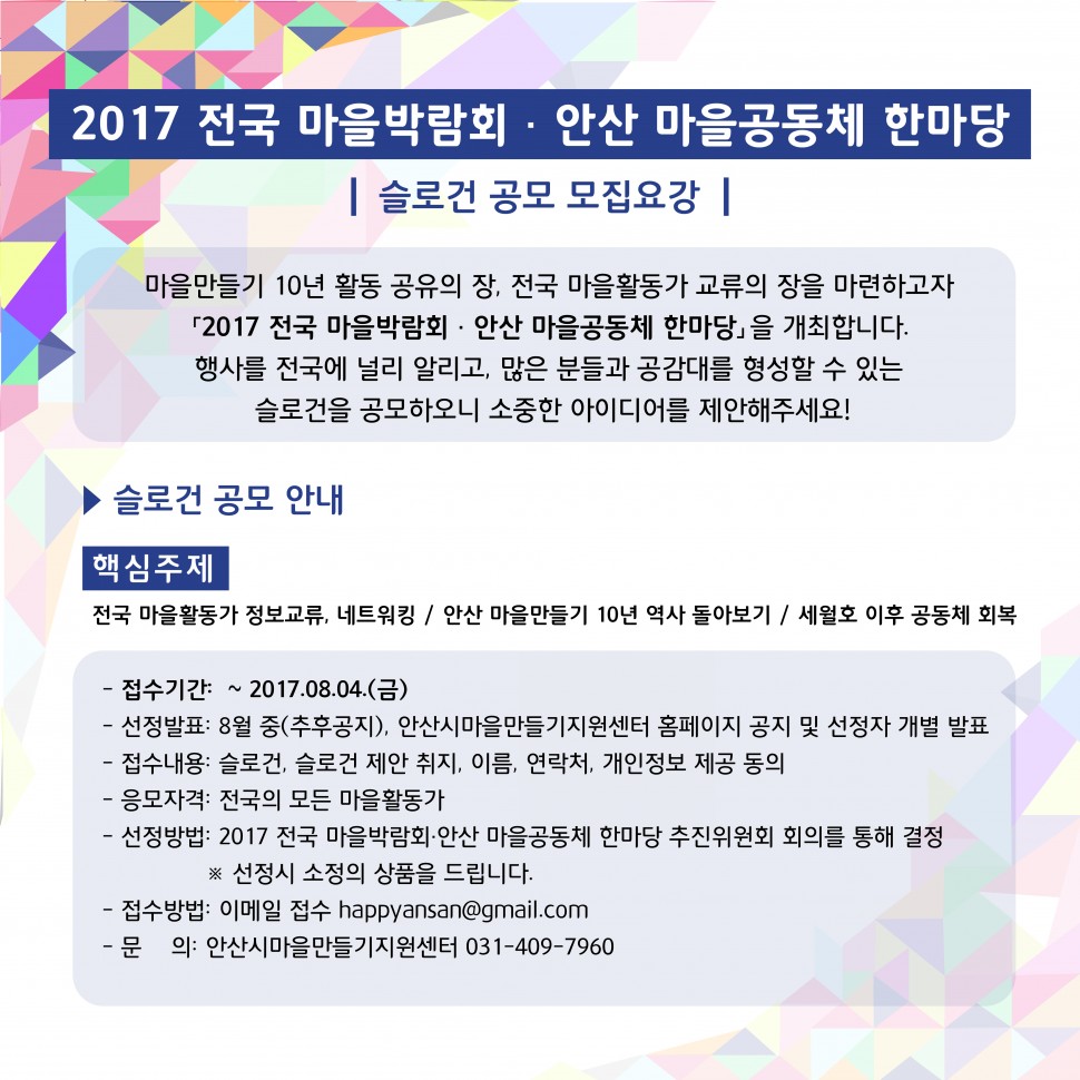 「2017 전국 마을박람회 · 안산 마을공동체 한마당」 슬로건 공모