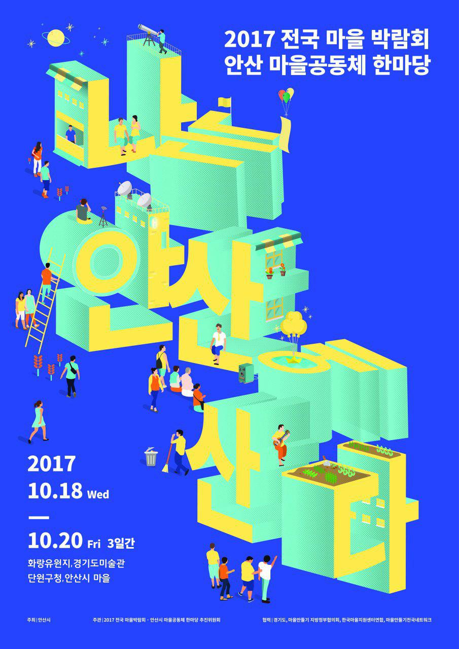 2017 전국마을박람회·안산 마을공동체 한마당 추진위원회에서는 지난 7월 22일부터 8월 4일까지 14일간 행사슬로건 34개를 공모받았으며, 추진위원회 및 실무협의회에서 투표를 거친 상위 7개의 슬로건에 대하여 주민분들의 온라인 심사를 통해 최종 슬로건을 결정하였습니다.