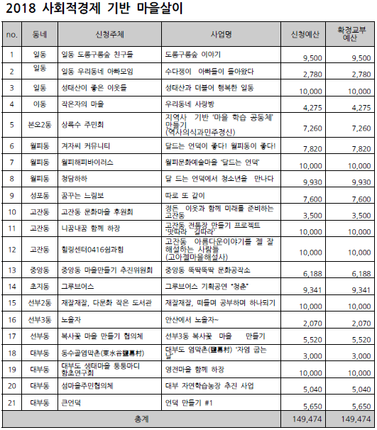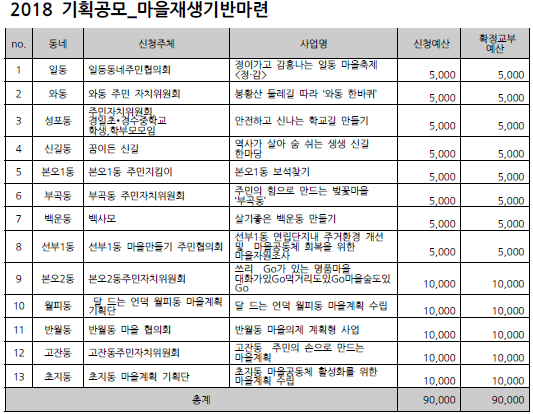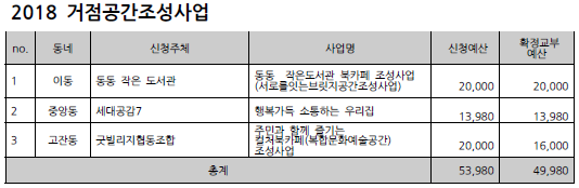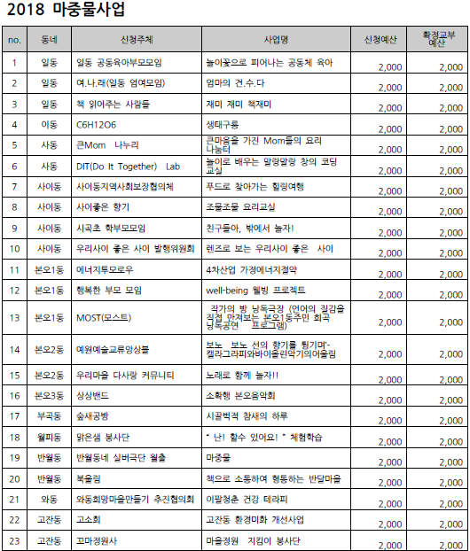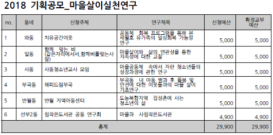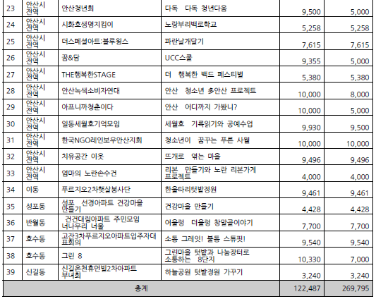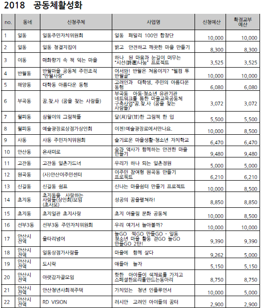 2018 안산시 마을만들기 주민공모사업 선정 결과