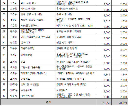 주민 스스로 좋은 마을을 만들어 나가는 안산시 마을만들기 주민공모사업에 신청해 주신 모든 분들께 감사드립니다.