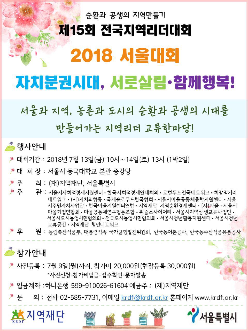 [공지] 제15회 전국지역리더대회 2018 서울대회 참가자 모집