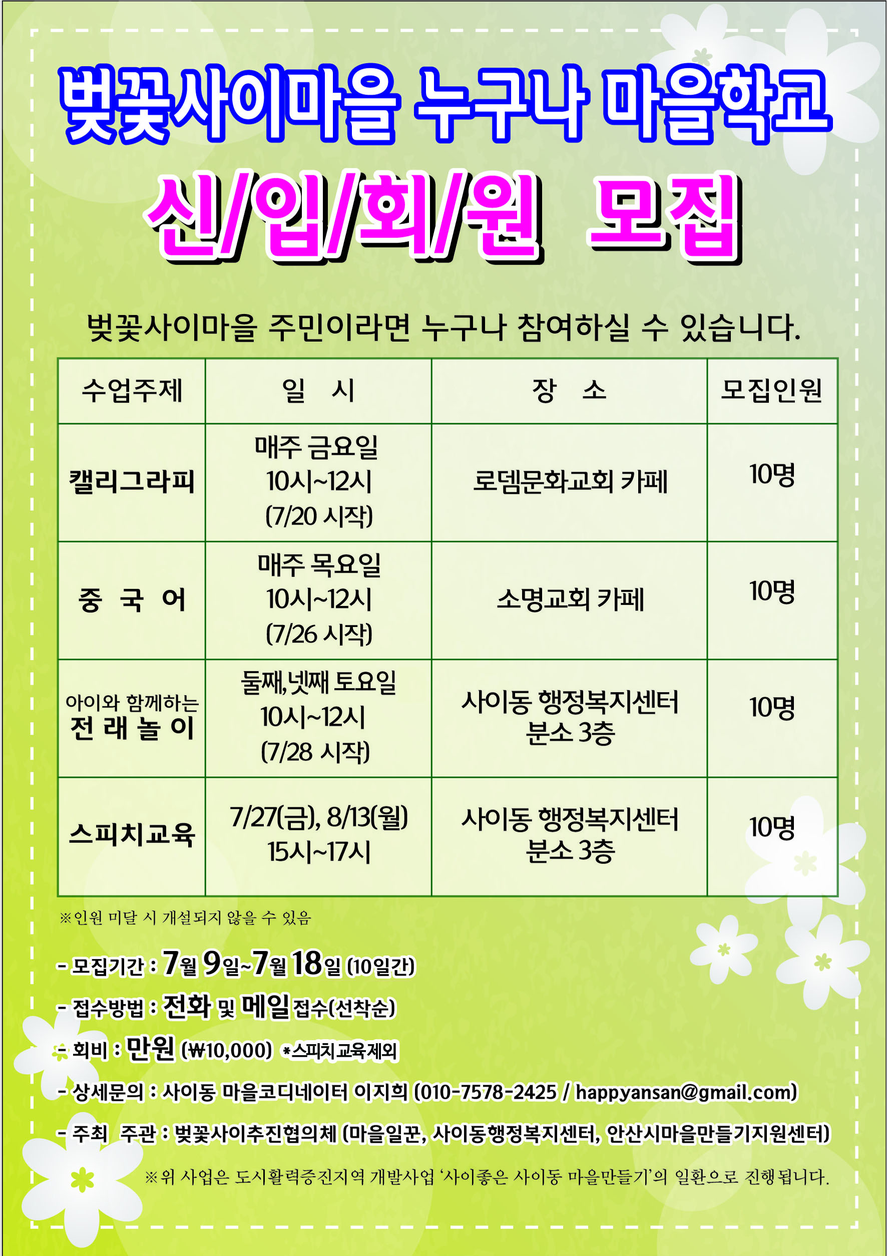 - 상세문의: 사이동 마을코디네이터 이지희 010-7578-2425/happyansan@gmail.com
