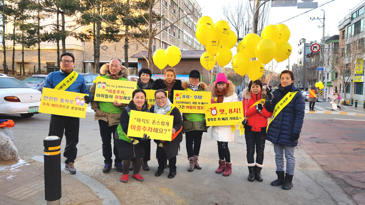 안산시 일동 주민자치위원회는 지난 1일 일동 호동초 ~ 성호중 일대에서 '통학로 이중주차, 아이들이 위험해요' 라는 모토로 안전한 통학로 만들기 노란풍선 캠페인을 했다.