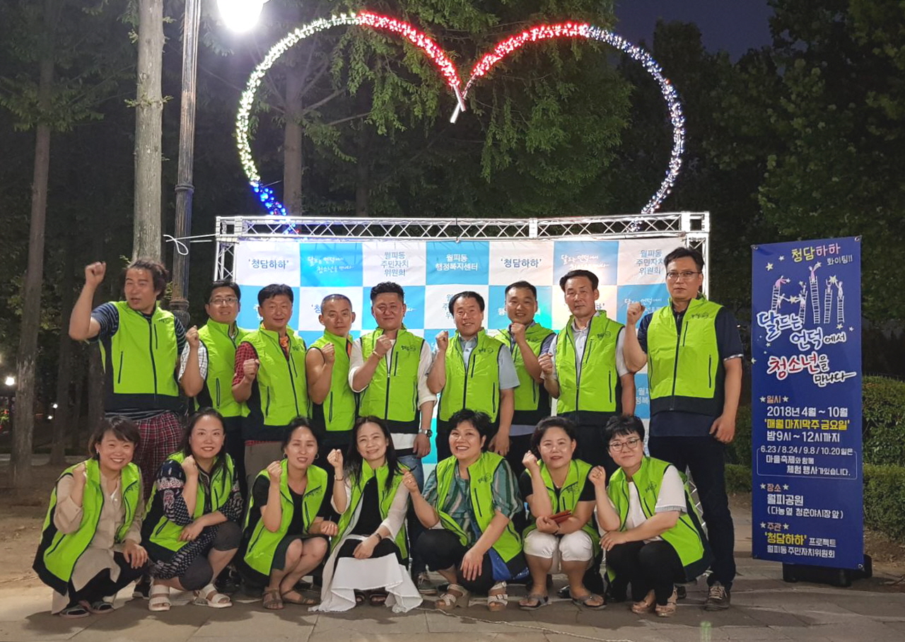 안산시 월피동 주민자치위원회(위원장 이용팔)는 지난 27일 저녁 9시부터 12시까지 월피예술광장에서 「2018년 청담하하 프로젝트」를 진행했다.