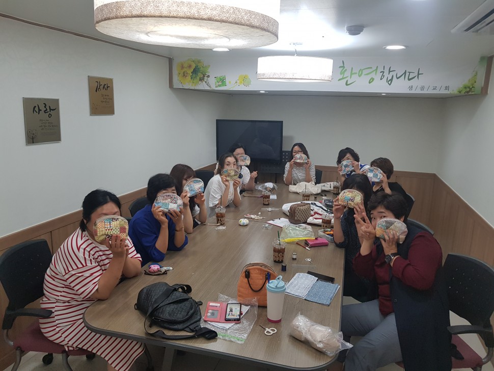 - 카네이션 부토니에 만들기: 가정의 달 5월을 맞아 카네이션 부토니에를 만들어보고 재능기부를 함. 재능기부를 받은 주민 중 한분이 샘골교회 어르신들께 어버이날 기념 부토니에를 만들어 달아드림.