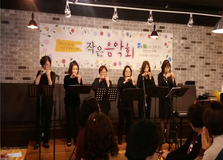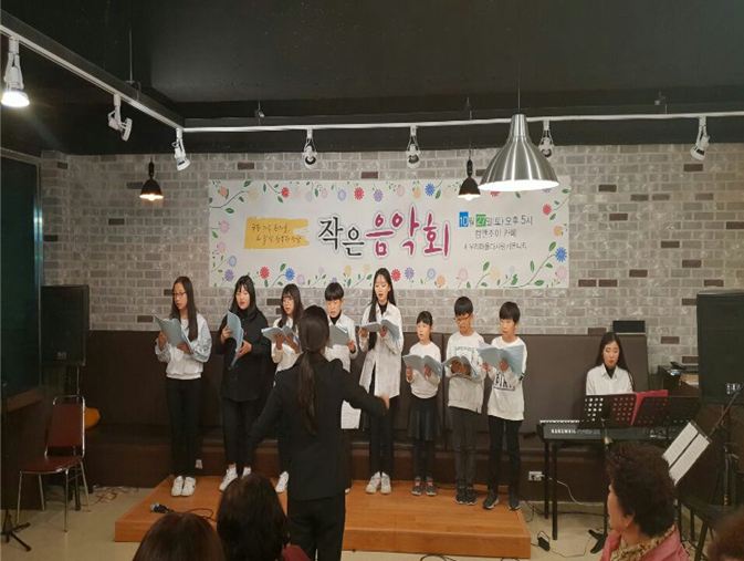 ○ 작은 음악회 공연 -. 10월 27일에 합창단 결실을 맺고 지역주민과의 소통의 장이 되고 마을 공동체를 이루어가며 마을의 지속적인 발전을 기대함. |