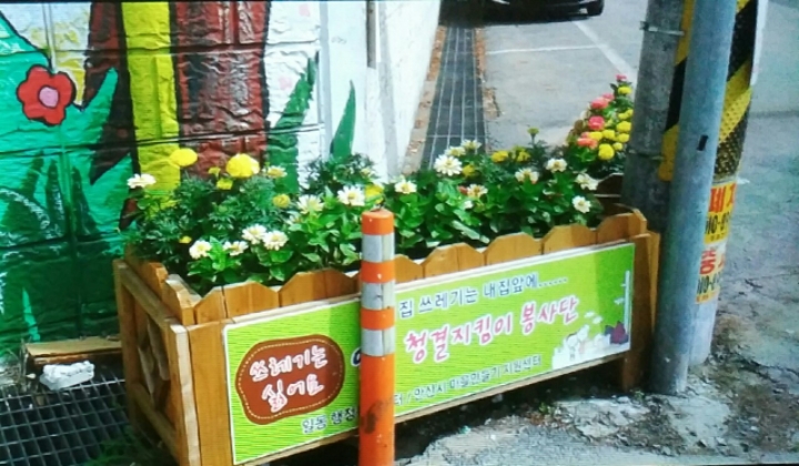 ○ 내집앞 내가 쓸기 캠페인 및 환경 정화운동 실시 ○ 쓰레기 무단투기지역 파악후 화단만들기(계절별 꽃 심고 가꾸기 |