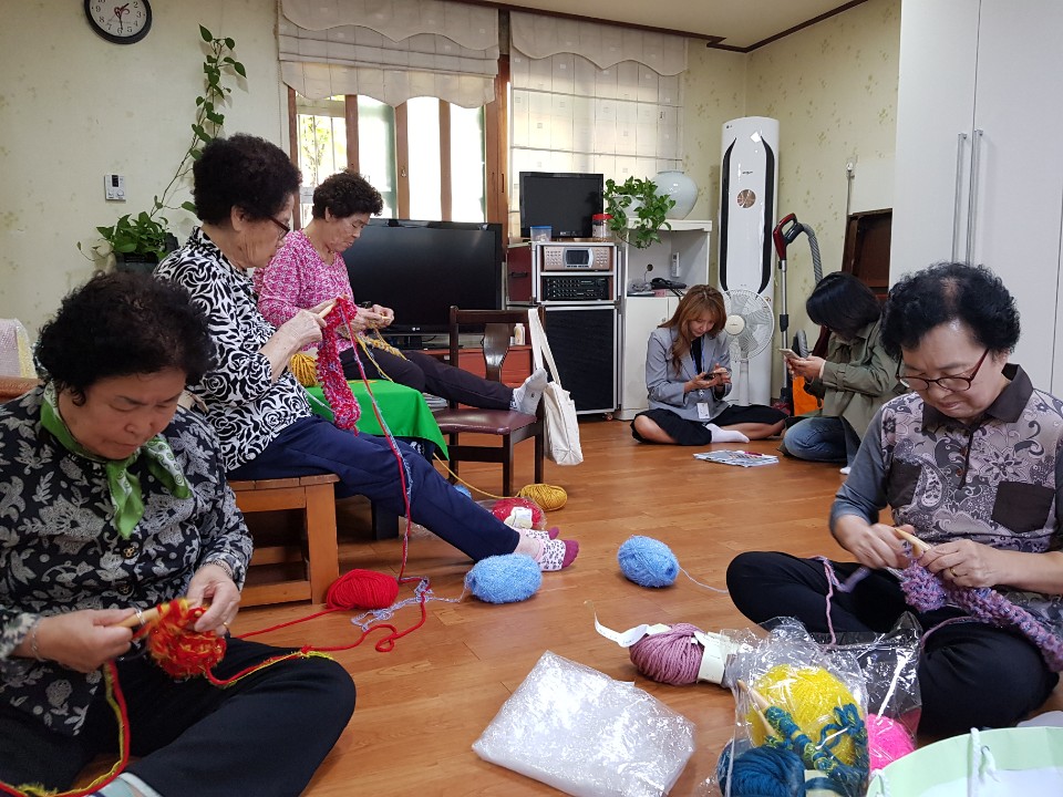 어르신들이 자발적으로 참여하고 자기주도적 성향을 보였다. (실의 재질, 실의 굵기, 실의 색 등 선택) 이를 통해 어르신들이 자신감을 향상되었음을 직감할 수 있었다. 반면, 본 사업은 다음과 같은 면에서 제한점을 지닌다. 첫째, 지역주민들의 자발적 참여 의식 부족하다 둘재, 여성 어르신만을 대상으로 하여 남성 어르신에 대한 배려가 부족하므로 추후 활동에서는 남성 어르신에 대한 활동 부분이 포함되어야 할 것이다.