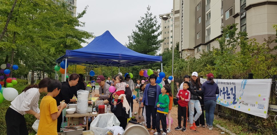 ○ 지구를 구할 영웅들 - 환경의 주제별 접근을 돕고, 신길천정화활동단체 신통방통과도 함께 연계하여 환경퀴즈맞추기 등을 준비하고, 폐지를 활용한 팝업놀이터에서 신길천알리기와 환경퀴즈맞추기, 만든 놀이감으로 헬멧포토존, 오늘은 현충일 등의 내용으로 추진. ○ 주민과 아이들이 함께 열어가는 건강한 문화생활 - 가을맞이 아이들이 즐길 수 있도록 놀이와 간식으로 공원나들이 형태의 아이돌봄 추진. 인스턴트와 레토르트 식품이 주된 현대인과 아이들에게 채소가 풍부한 메뉴를 선정하여 이웃과 아이들에게 나누고, 헌 책 속 좋은 구절을 나누며 전기를 이용하지 않고, 태양광을 사용한 장식등에 서로 좋은 글 귀를 적어 주어 크리스마스리스로도 활용할 수 있도록 나눔. |