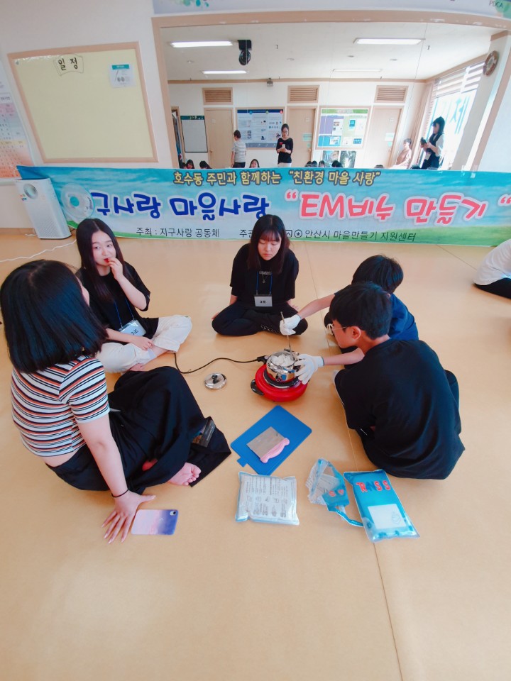 ○ EM 흙공 만들기 1) 지구시민교육 (친환경 강의) 2) BHP(Brain Healing Point) 힐링 건강교실(체조) 3) EM 흙 공 만들기 및 하천 정화활동 및 지구환경 의식 고취하기 ○ EM 비누 만들기 1) 지구시민교육 (친환경 강의) 2) BHP(Brain Healing Point) 힐링 건강교실(체조) 3) 체험을 통한 공감대로 대화 형성하기 및 마을 소식 공유하기 ○ 우리 마을 숲 명상하기 1) 지구시민교육 (친환경 강의) 2) BHP(Brain Healing Point) 힐링 건강교실(체조) 3) 우리 마을 숲 명상하며 서로 힐링 해주기 |