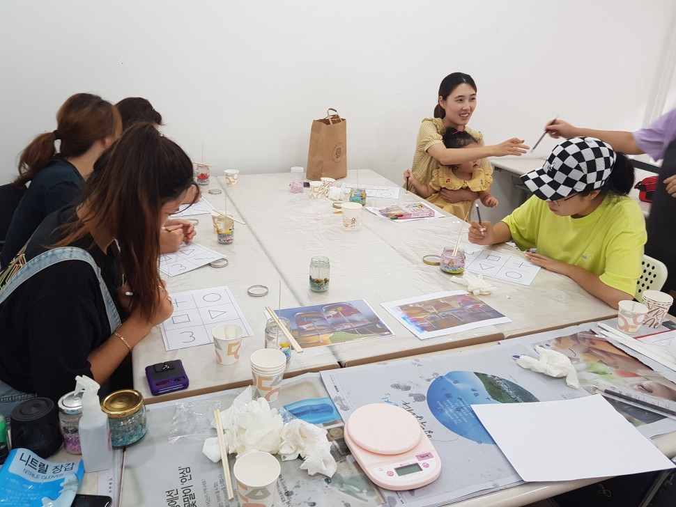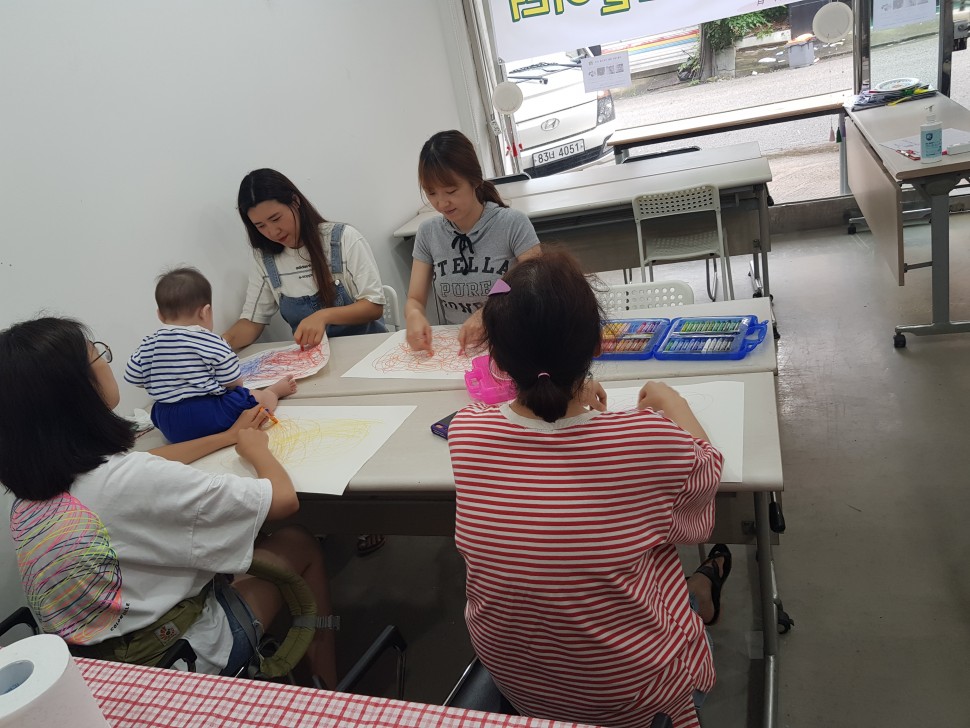 - 8월 여름방학동안 벚꽃사이마을협동조합 사무실에서 총 12회동안 8명의 어린이들과 함께 미술심리기법으로 마음을 열고 스트레스 및 문제들을 서로 공감하며 및 미술활동 통하여 스트레스 해소 및 문제해결을 할 수 있었습니다.