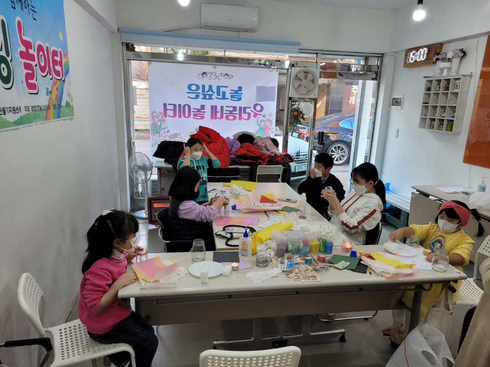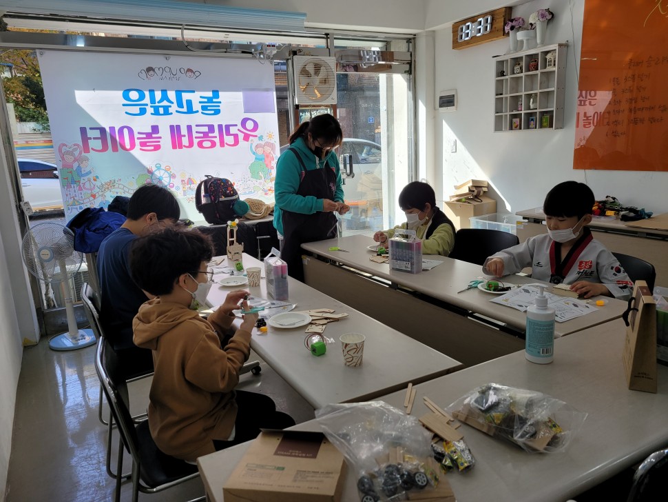 - 9월부터 매주 토요일 오전에 5명의 어린이들과 코로나 안전수칙을 지켜가며 실내 메이킹 놀이를 총 8회 진행하였습니다.