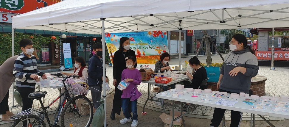 9월26일 오전11시~오후4시 큐앤씨24앞 광장에서 마을주민164명과의 만남을 통해 석고방향제를 나눔하였다.