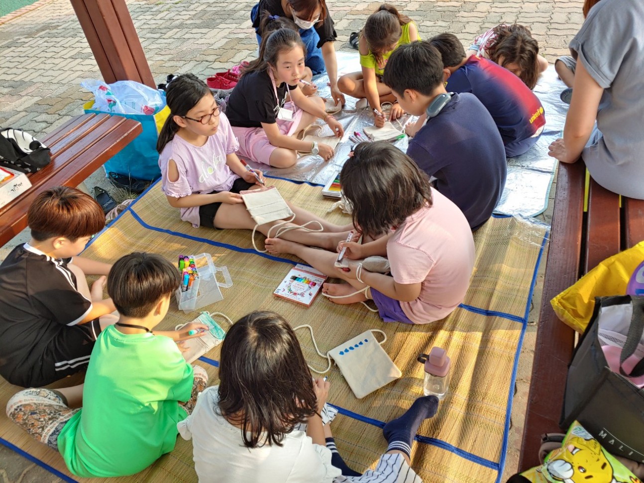 야외에서 놀이활동후, 나만의 가방만들기 활동함, 동동작은도서관으로 이동하여 모기퇴치제 만들기 함.