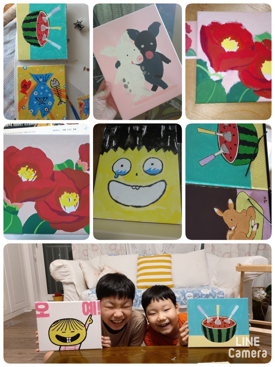 각자 집에서 그림책 장면을 번호순서대로 그리는 유화그리기 활동진행, 인증사진찍기