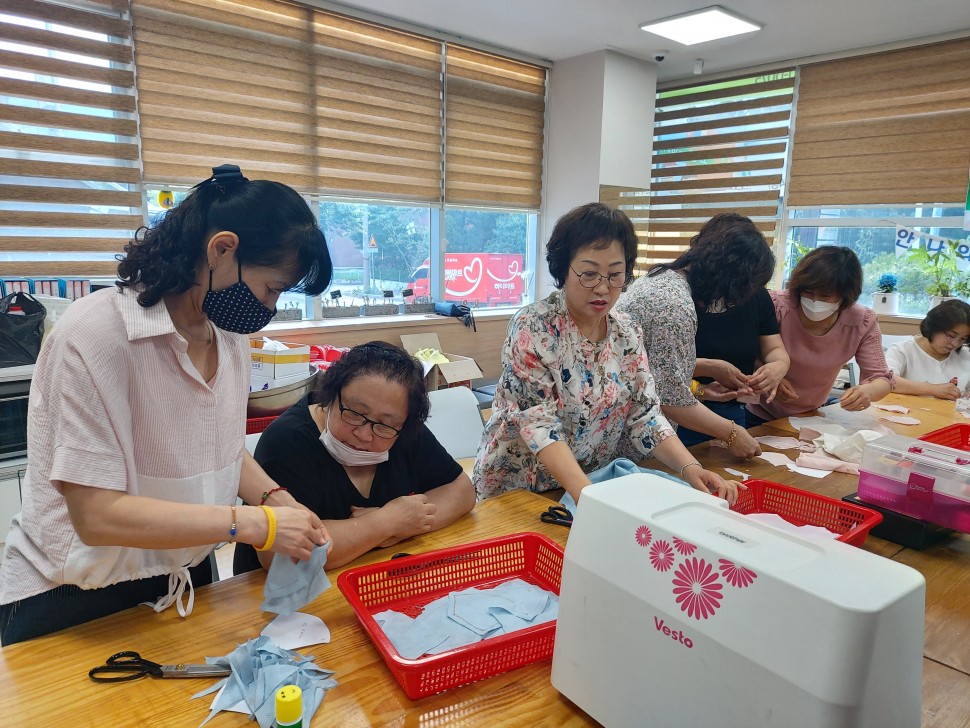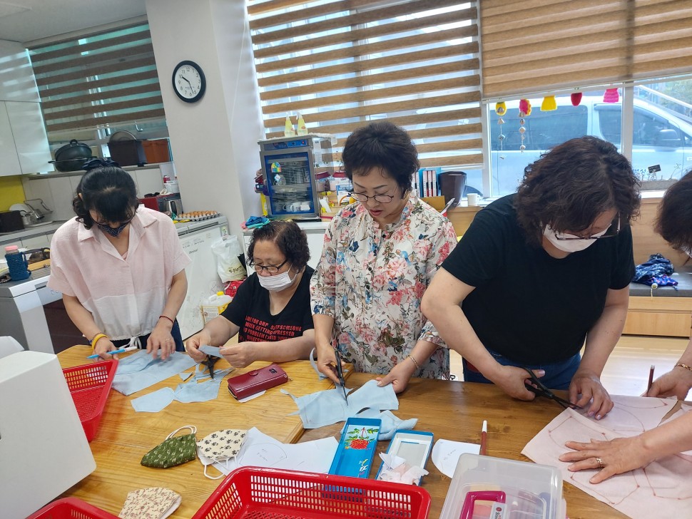 ※ 코로나 19감염 대응으로 여름용 인견마스크와 손씻기 예방을 위해 유기농 3중거즈 손수건 1000개씩 만들어 나눔으로 주민들의 힘으로 한땀한땀 정성들여 만든 마스크를 주민들에게 나누면서 주민의 안부까지 확인하는 정이 넘치는 문화마을의 저력을 드러냈다