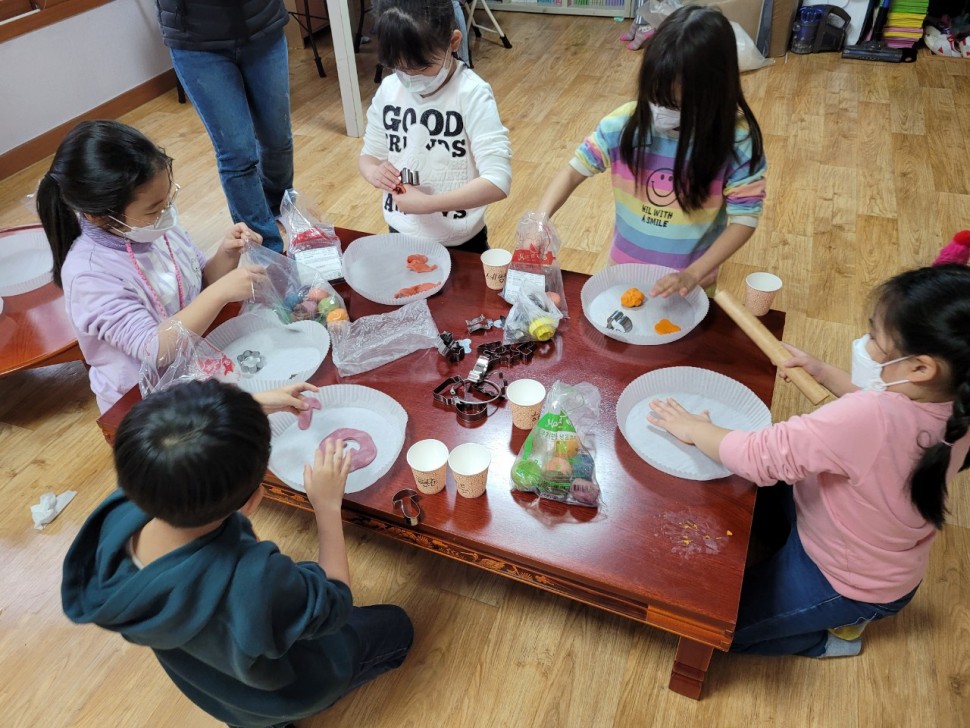 오랜만에 만나보는 친구들과 함께 쿠키를 만들며 의견을 공유하는 시간을 가져보고 솜씨도 자랑하고 오감체험 활동을 해보았음