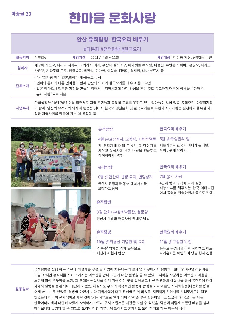 안산 유적탐방 한국요리 배우기
