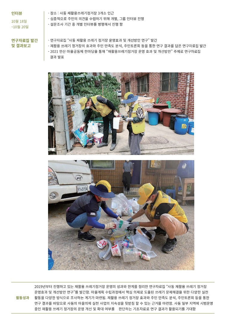 재활용쓰레기정거장 운영 효과 및 개선방안 연구